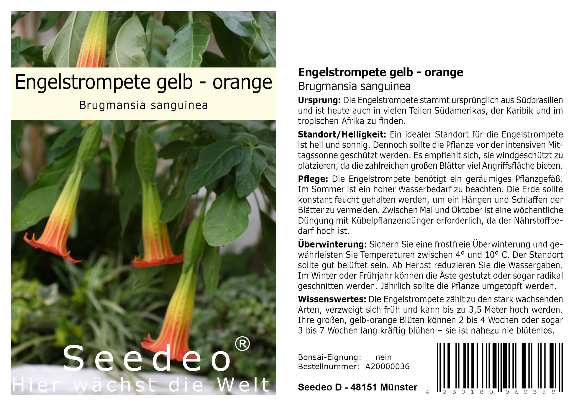 Seedeo® Engelstrompete gelb - orange - Brugmansia sanguinea 10 Samen