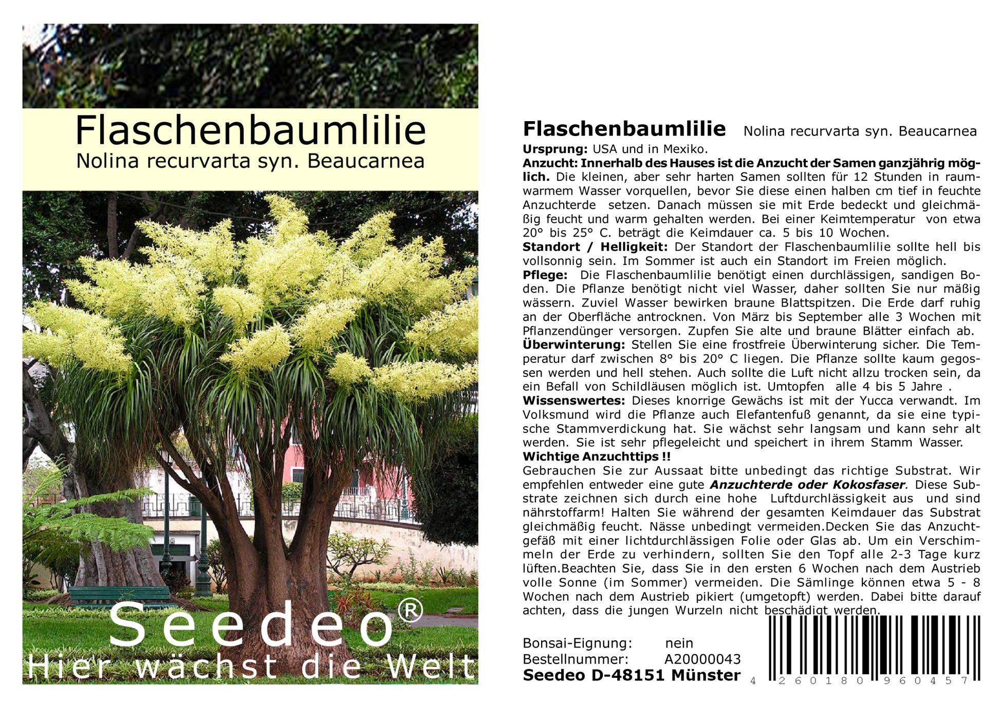 Seedeo® Flaschenbaumlilie - Elefantenfuß -(Nolina recurvata) 10 Samen