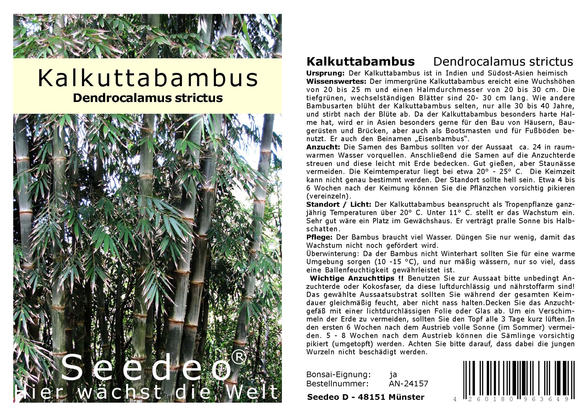 Seedeo® Kalkuttabambus (Dendrocalamus strictus) 60 Samen