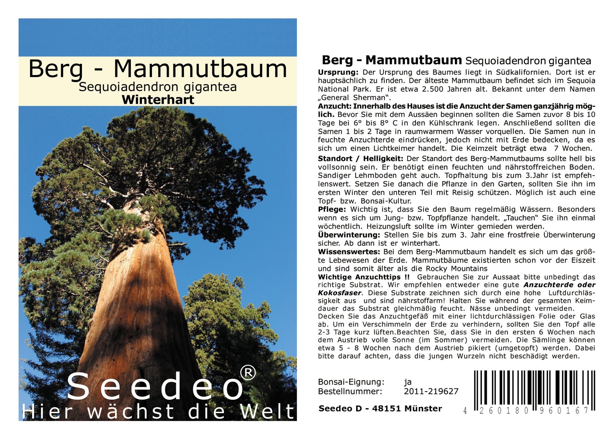 - 50 Samen der Berg-Mammutbaum Sequoiadendron giganteum
